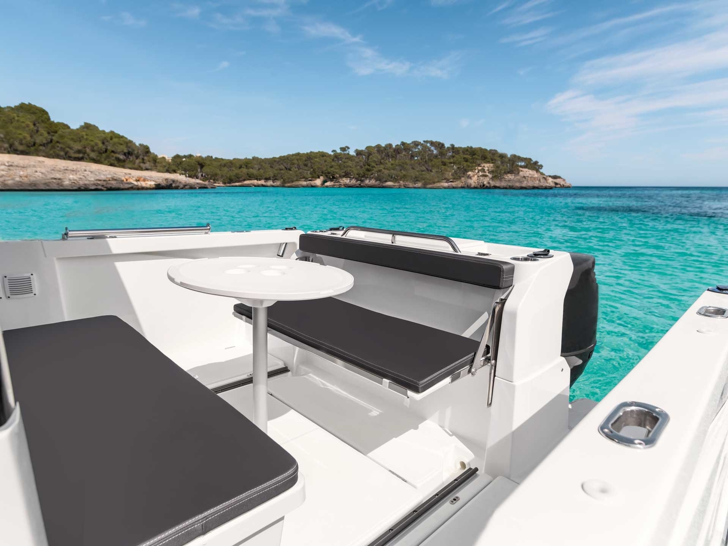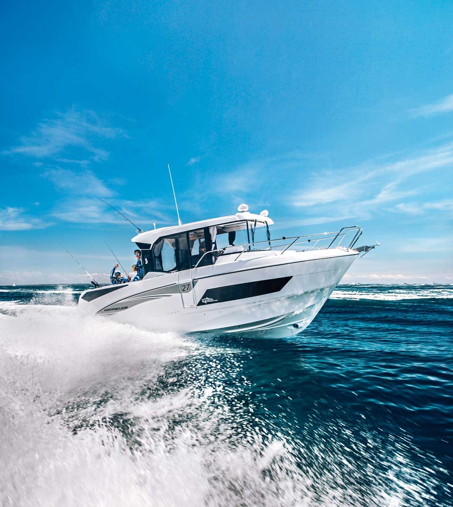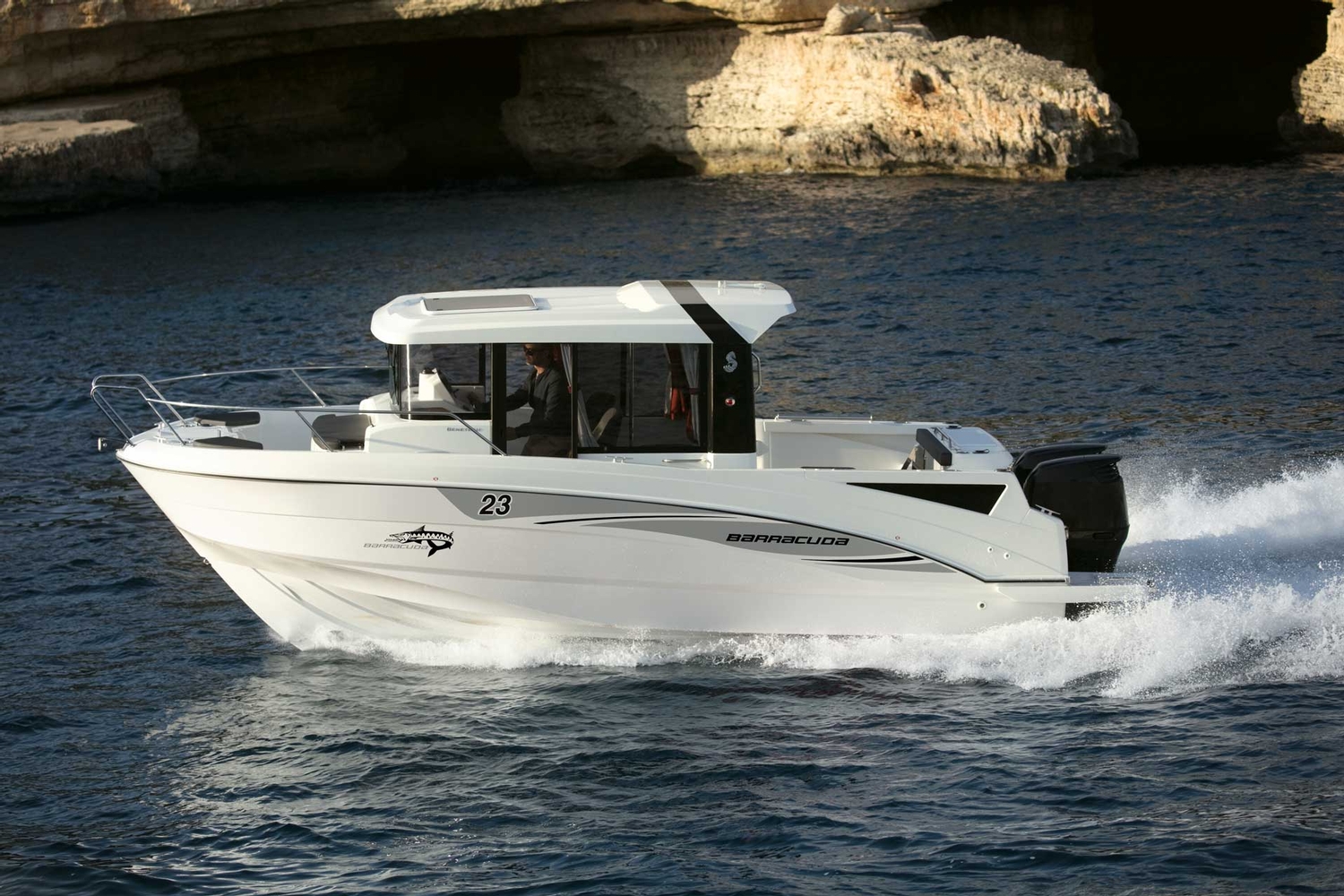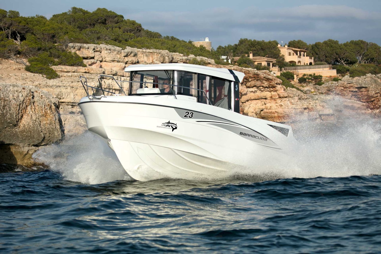 For those whose love of the water includes many different expressions, our Barracuda outboard powerboat is the SUV of the sea. From fishing to diving to cruising, she has been designed, built and tested to be on a first name basis with all waters, even in their foulest moods. She's as indispensable as a lucky rod and reel or a high-quality scuba mask. There's an apex predator out there—the Barracuda—and she's hungry for adventure.